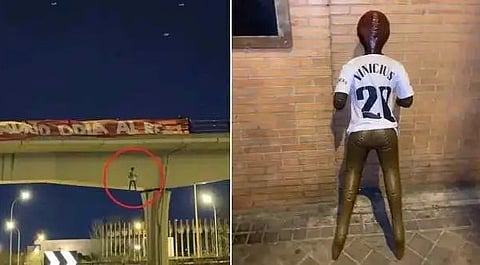 وذكرت الشرطة، في بيان نقلته صحيفة "ماركا" الإسبانية بأن: "القبض على هؤلاء، جاء بسبب تعليقهم دمية بقميص فينيسيوس جونيور على جسر بالقرب من المدينة الرياضية لريال مدريد".