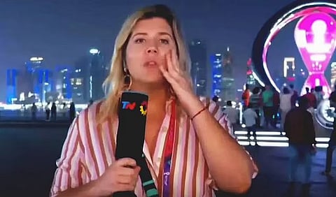تعرضت مراسلة تلفزيونية أرجنتينية للسرقة على الهواء مباشرة أثناء قيامها بتقديم تغطية صحفية على هامش مسابقة كأس العالم 2022 في قطر.