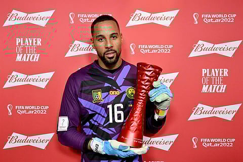 توج ديفيز إيباسي، حارس مرمى منتخب الكاميرون الأول لكرة القدم، بجائزة أفضل لاعب في مباراة منتخب بلاده ضد البرازيل، اليوم الجمعة، ببطولة كأس العالم 2022.