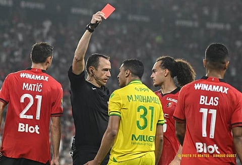 تعرض اللاعب المصري مصطفى محمد، الذي يلعب في صفوف فريق نانت، للطرد خلال مباراتهم ضد رين في الجولة السابعة من الدوري الفرنسي.