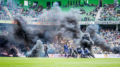 تقرر إلغاء مباراة أياكس أمستردام ضد جرونيجين في الجولة الثانية والثلاثين من بطولة الدوري الهولندي، والتي أقيمت على ملعب الأخير عصر اليوم الأحد.