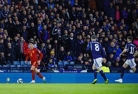 وجاء تشكيل منتخب إسبانيا، لمواجهة أسكتلندا، المقامة حاليا في الجولة الثانية من التصفيات الأوروبية المؤهلة لبطولة اليورو 2024، كالتالي :